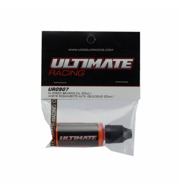 This is a bottle of Ultimate Hi-Speed Bearing Oil. This is an oil designed for use in bearings to keep them rolling free and smooth to help you get the most out of them every race. It comes in a 20ml durable, leak-proof bottle. Over the years the Modelix team has experimented with many different types of oils and oil formulas and have found this Hi-Speed Bearing Oil to be the best for keeping bearings smooth and clean, so they last longer and run better. Very good for use on dusty tracks and carpet tracks to combat the effects of dust and carpet hair contamination. Recommended for use immediately after bearing cleaning. We recommend to clean the bearings with the UR8405 Ultimate Racing Cleaning Unit with a spray cleaner and apply the Ultimate Hi-Speed Bearing Oil.