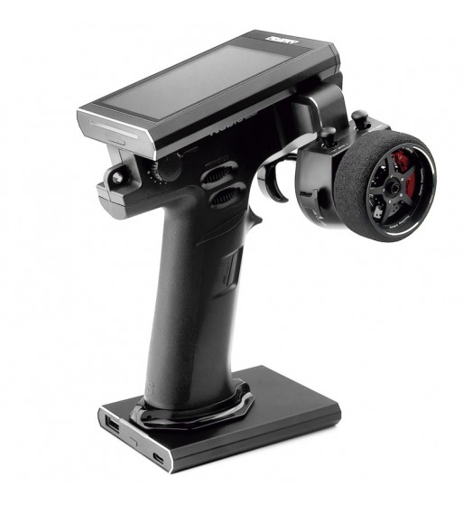 The FlySky Noble NB4+ is a feature-rich and powerful remote control for the RC car and boat sector. Equipped with the third generation 2.4 GHz AFHDS-3 protocol and in conjunction with the included FGr4B receiver, the NB4+ is suitable as a modern solution for use in teacher-student situations, among other things. The simple operation and clear menu navigation via the touchscreen display makes it easier for even beginners to get started with controlling remote-controlled models.