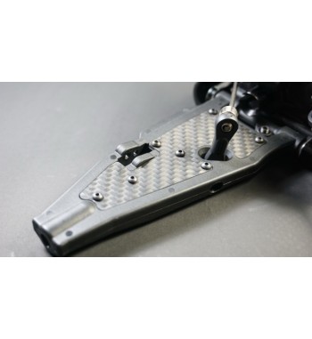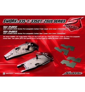 The latest SWORKz 1/8 Truggy Option Parts are the Front and rear lower arm covers made by 1.5mm Pro-composite Carbon fiber. This option parts had special extra 2 screws holes to adjust the lower arm’s stiffness.